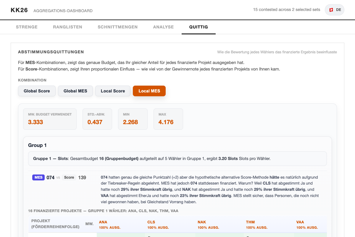 Kultur Komitee Winterthur 2024 has concluded. Among the 400,000 CHF budget, half was distributed using the Method of Equal Shares using an interactive webpage in the citizen assembly. |